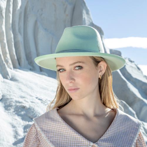 Cappello Drop a Tesa Larga in Feltro di Lapin Finitura Velour